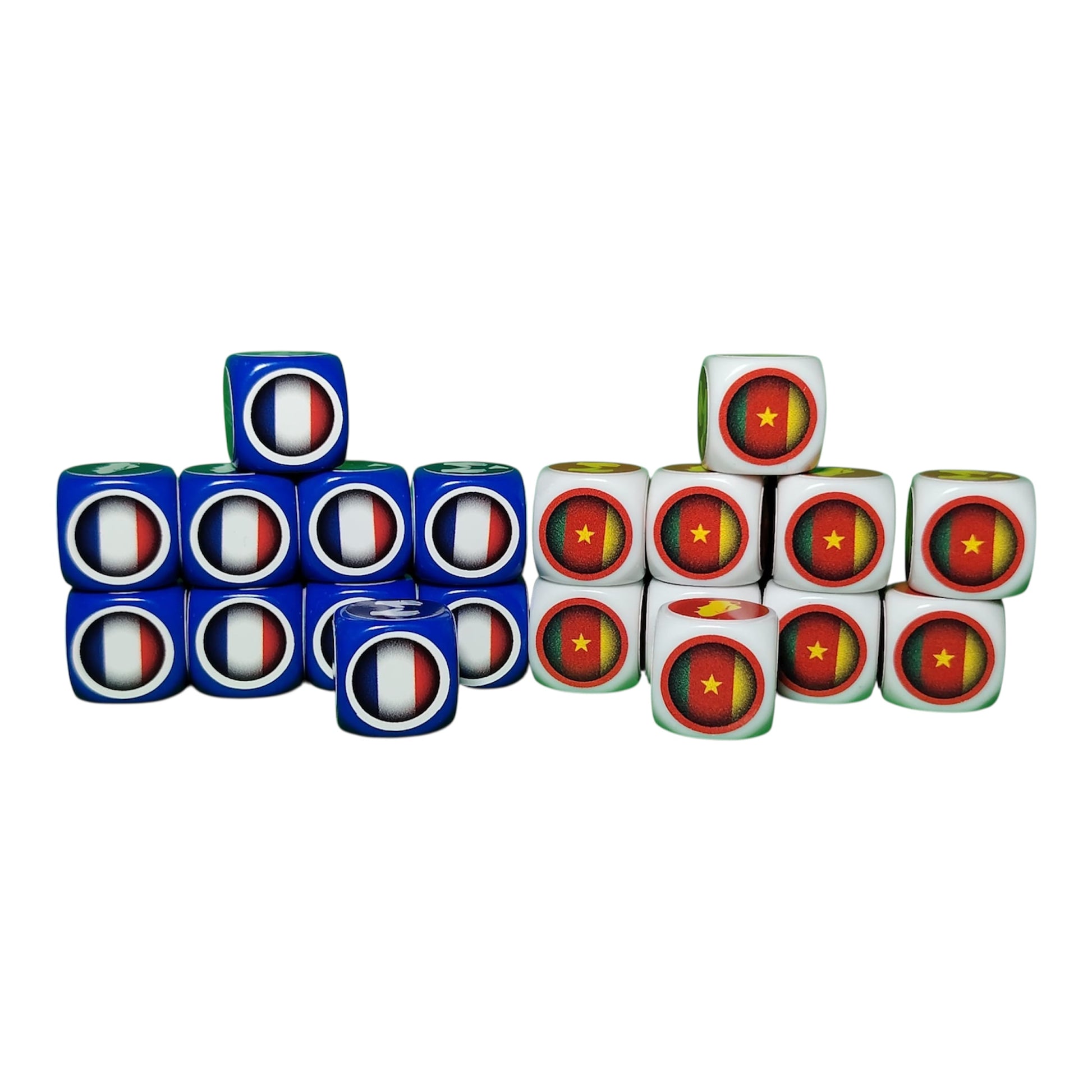 - 5 dice shots and 5 dice goals on white dice in the colors of Cameroon