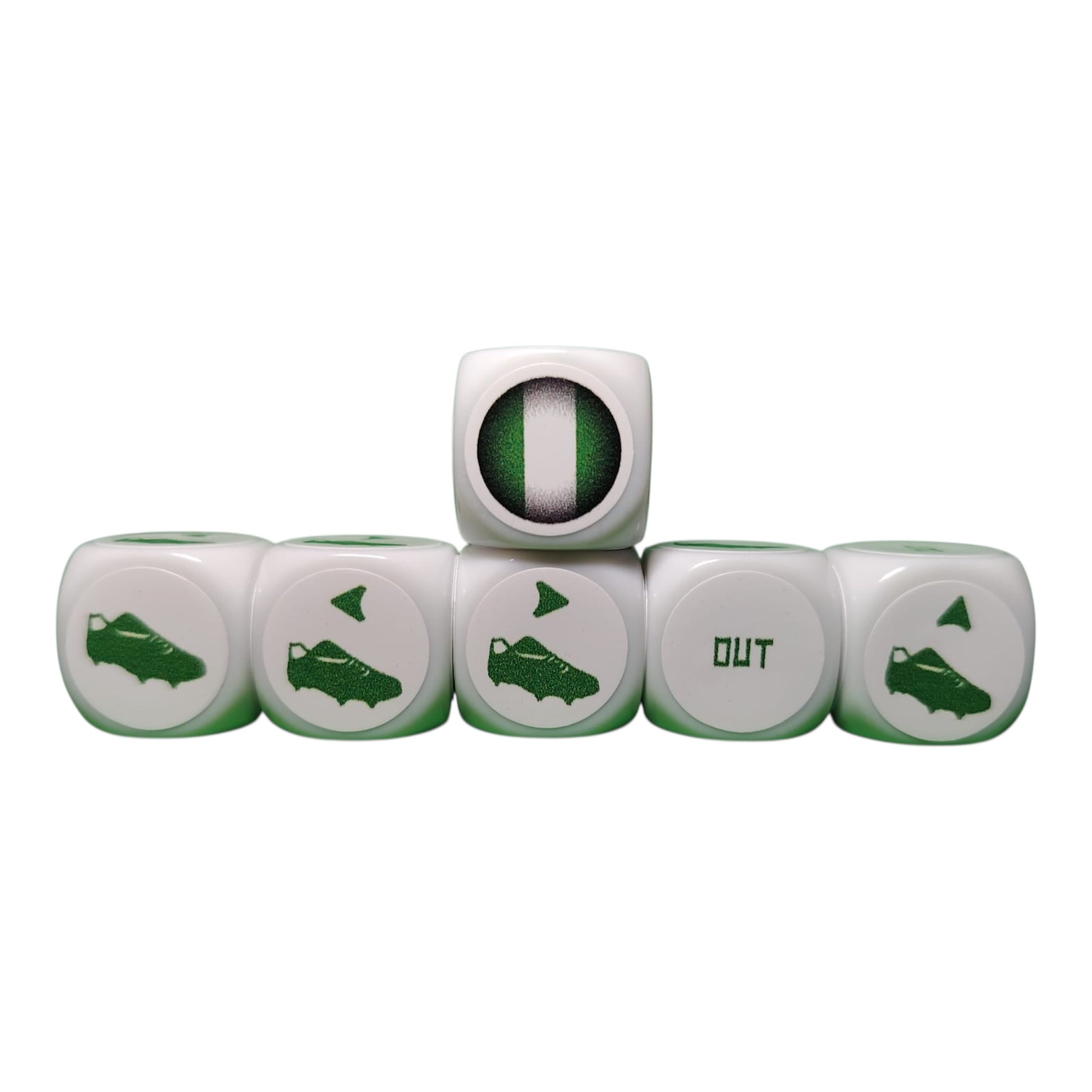 10 dés Dfoot Nigéria sur dés Blancs en version autocollants pour jouer en Face à Face avec d'autres Dfoot pays: