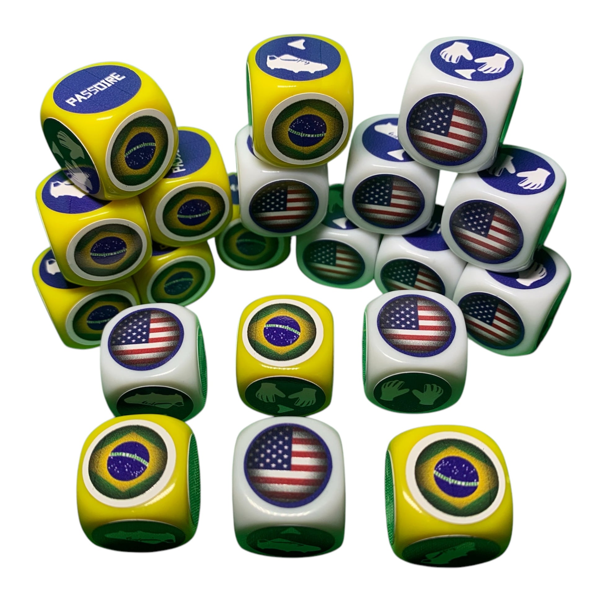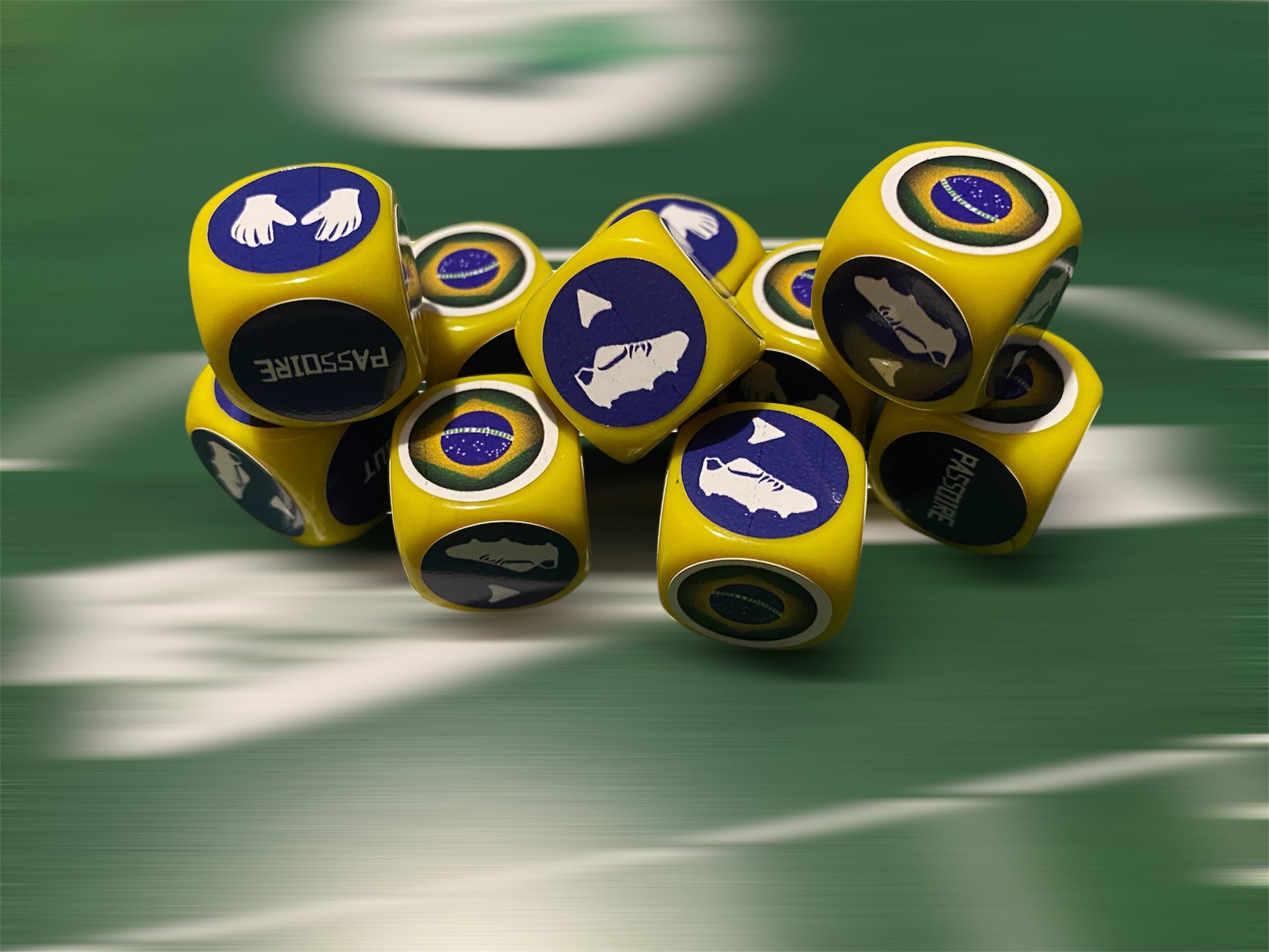 - 5 dés tirs et 5 dés goals sur dés jaunes aux couleurs du Brésil