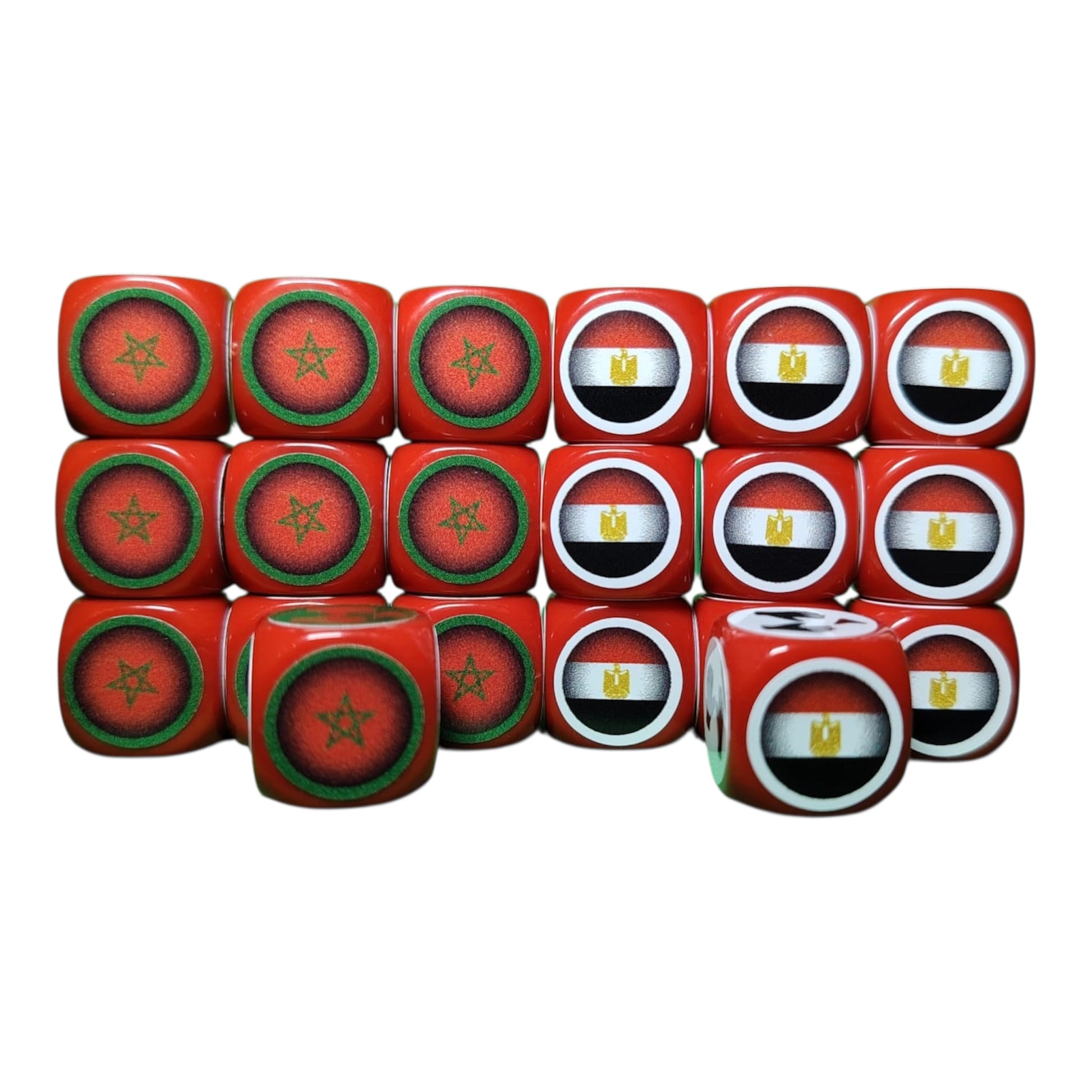 - 5 dés tirs et 5 dés goals sur dés rouges aux couleurs du Maroc
